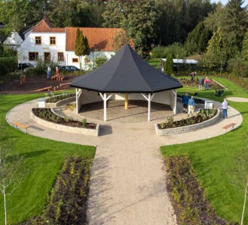 Haven er smukt anlagt med nøje udvalgte planter, lægeurter og informative plancher, der formidler hans historiske betydning både lokalt og globalt. Den inviterer besøgende til at nyde faciliteter som borde, bænke og en legeplads for børn.